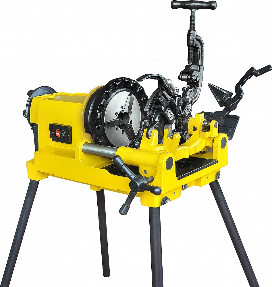 непосредственно в быстрооткрывающуюся автоматическую резьбонарезную головку - Возможна эксплуатация на верстаке, без использования опорных ножек