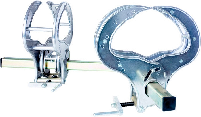 - В сочетании с поворотным основанием получается универсальный позиционный зажим, позволяющий удерживать трубу на изгибах 45° и 90°