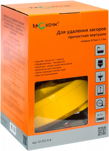 Вертушка для прочистки канализационных труб Крокочист 8,5 мм × 7,6 м (Crocochist 8,5 mm × 7,6 m) – самый эффективный и универсальный прочистной инструмент для удаления засоров в канализации и сточных трубах Ø до 76 мм, длиной до 7,6 м.